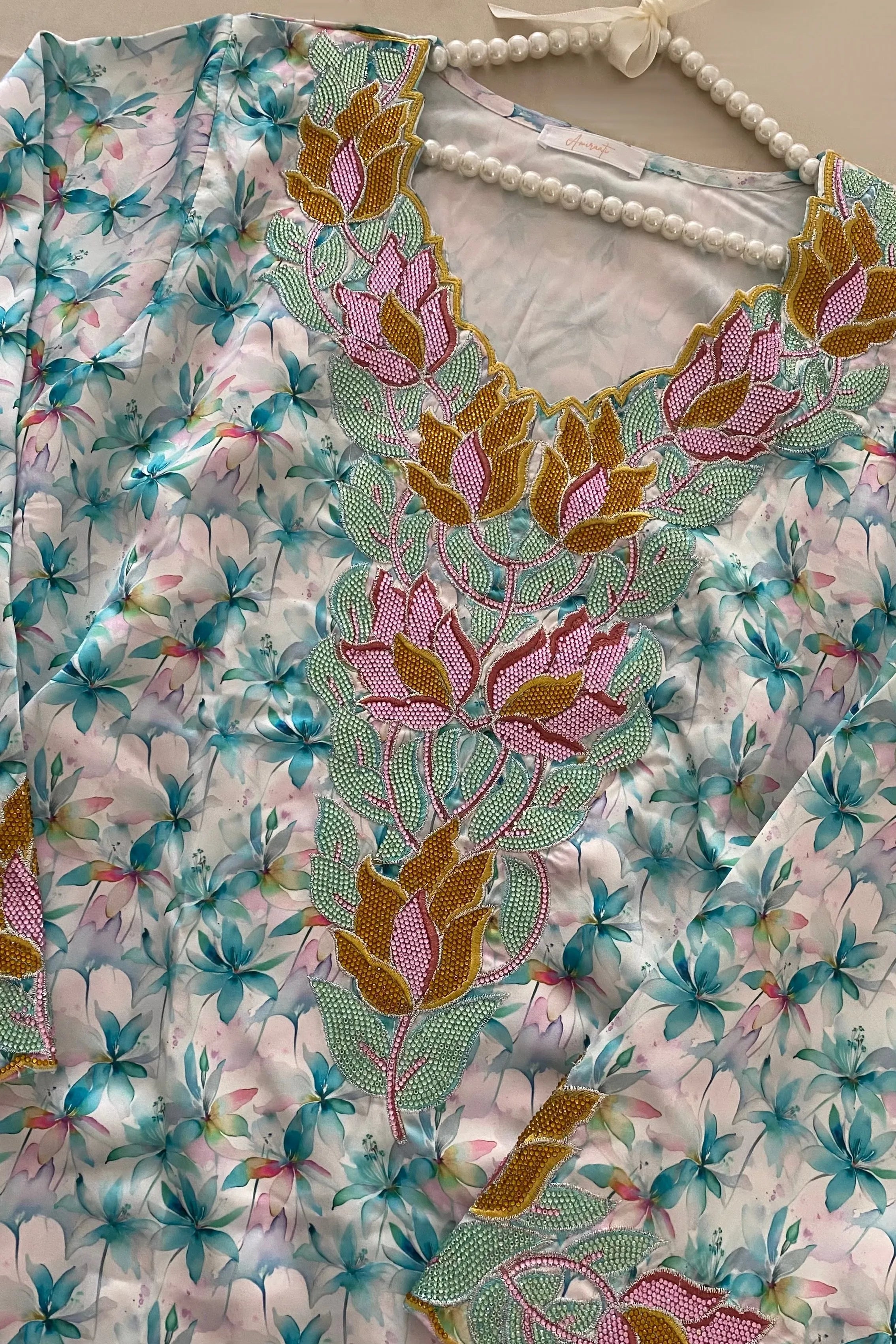Mystérieuse et envoûtante, Esmeralda charme par son élégance naturelle et son éclat rare. Les nuances vert tendre et lilas de cette robe rappellent l’éclat d’une pierre précieuse baignée de lumière, reflétant la beauté profonde et raffinée de son âme.