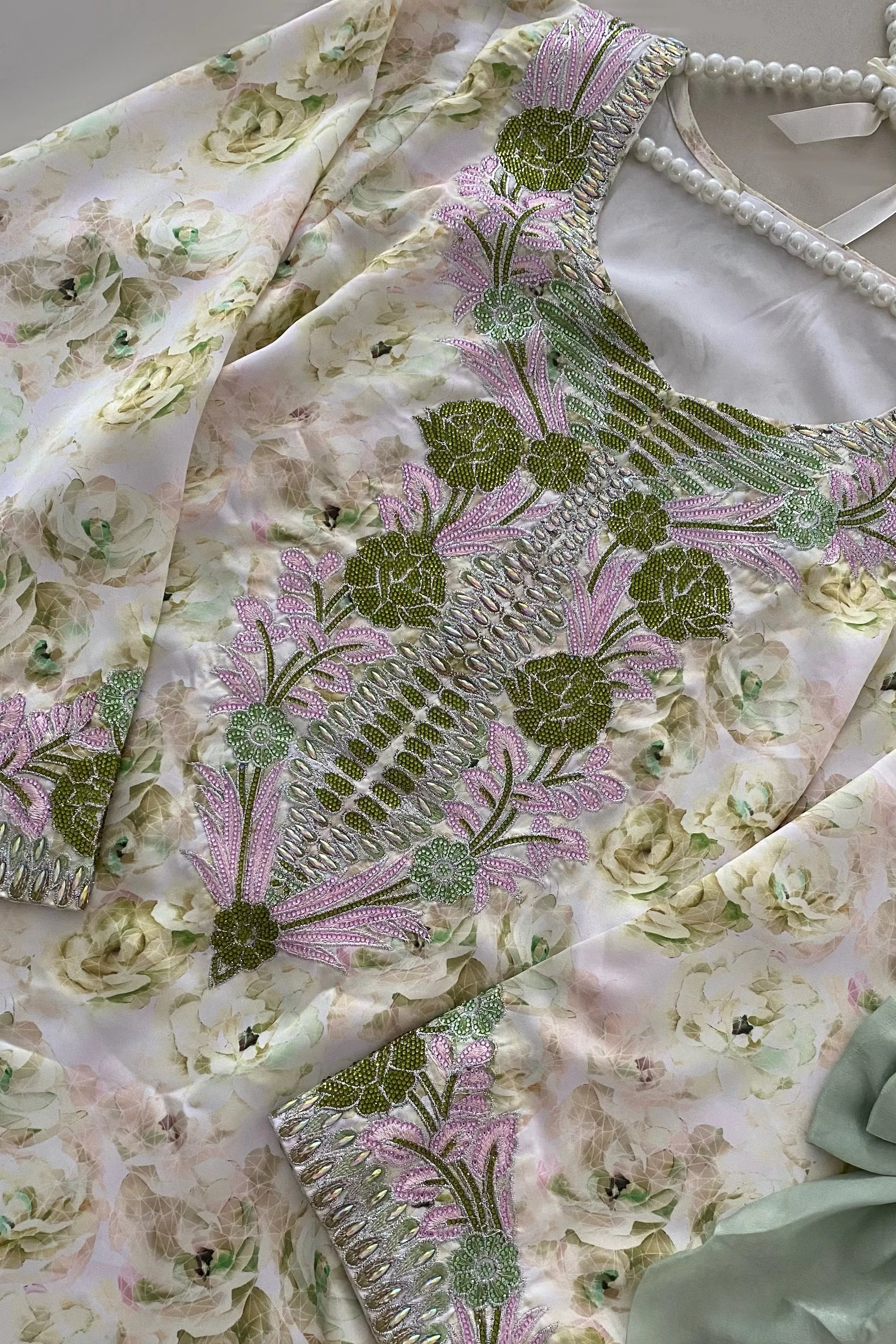 Raffinée et lumineuse, Lamia dégage un éclat subtil qui captive les regards. Les teintes délicates et les motifs soyeux de cette robe rappellent la douceur d’un crépuscule se fondant dans la lumière naissante du jour.