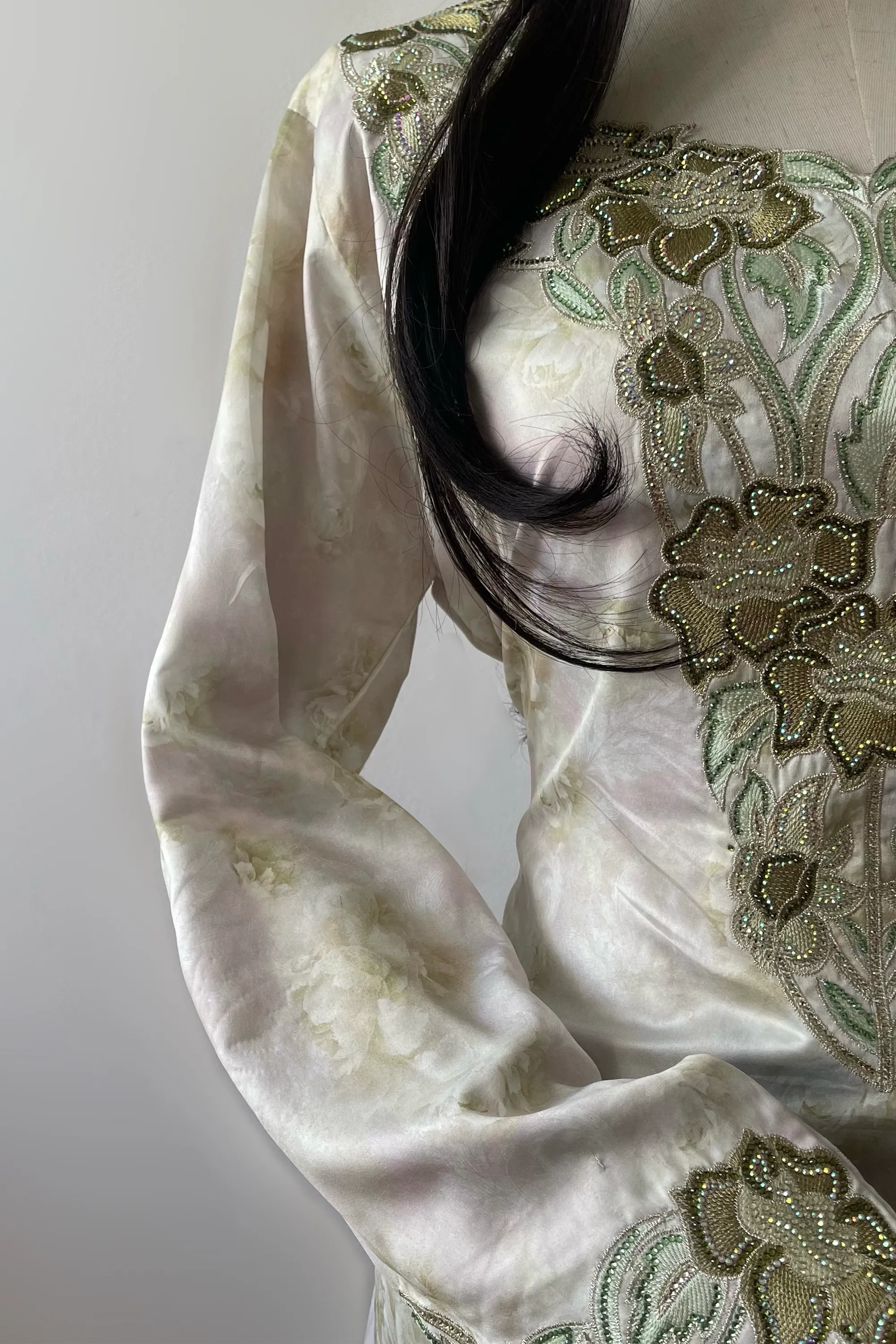 Une étoffe délicate comme la lueur du crépuscule, Mayssane incarne la grâce et le mystère, parfaite pour les soirées où chaque geste devient un éclat. Elle enveloppe celle qui la porte d’une aura douce et envoûtante, mêlant élégance et légèreté, comme un murmure au cœur de la nuit.