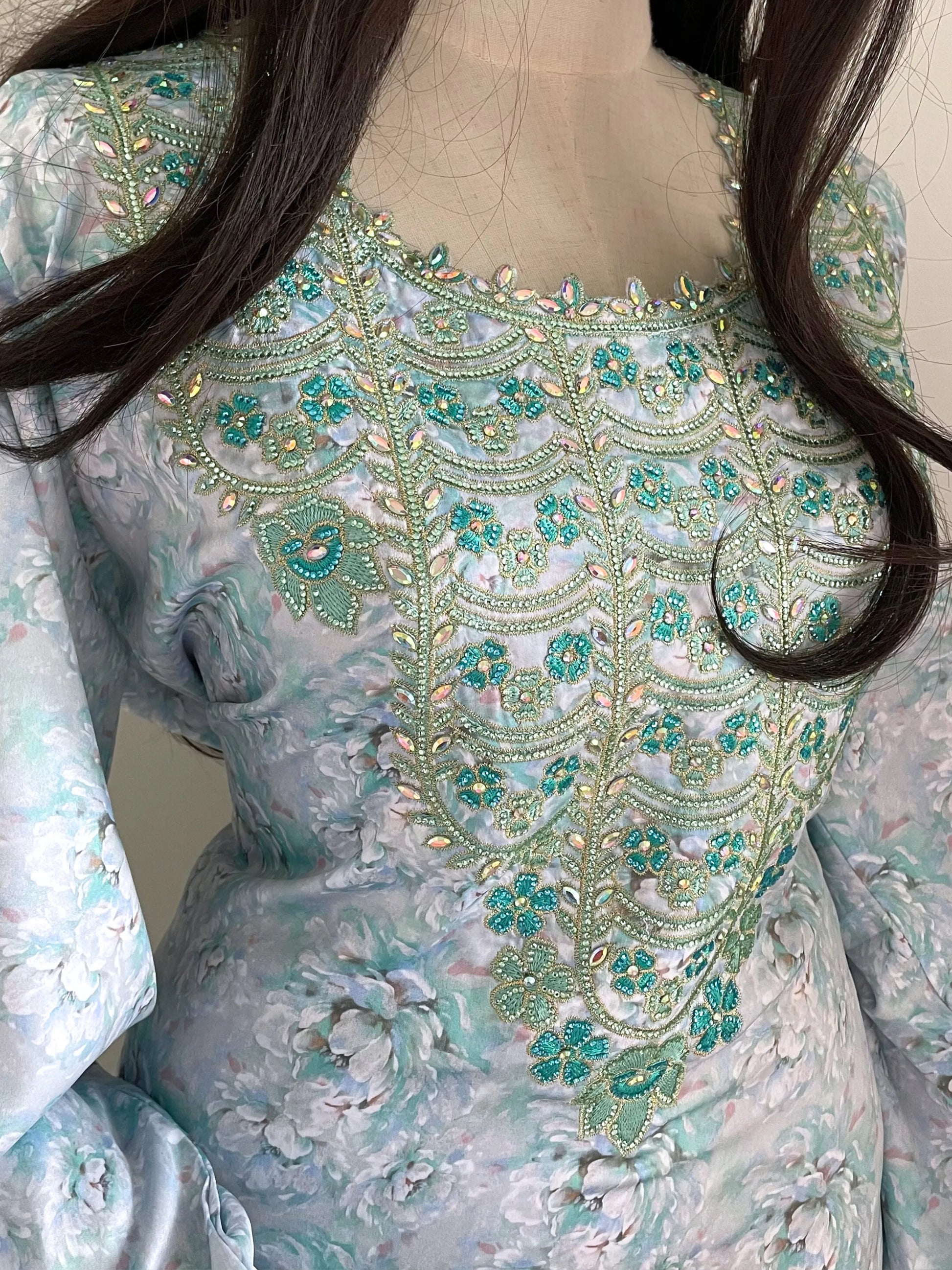 Laissez sécher à plat, à l'ombre, pour conserver l'éclat des fibres et la finesse des broderies.
