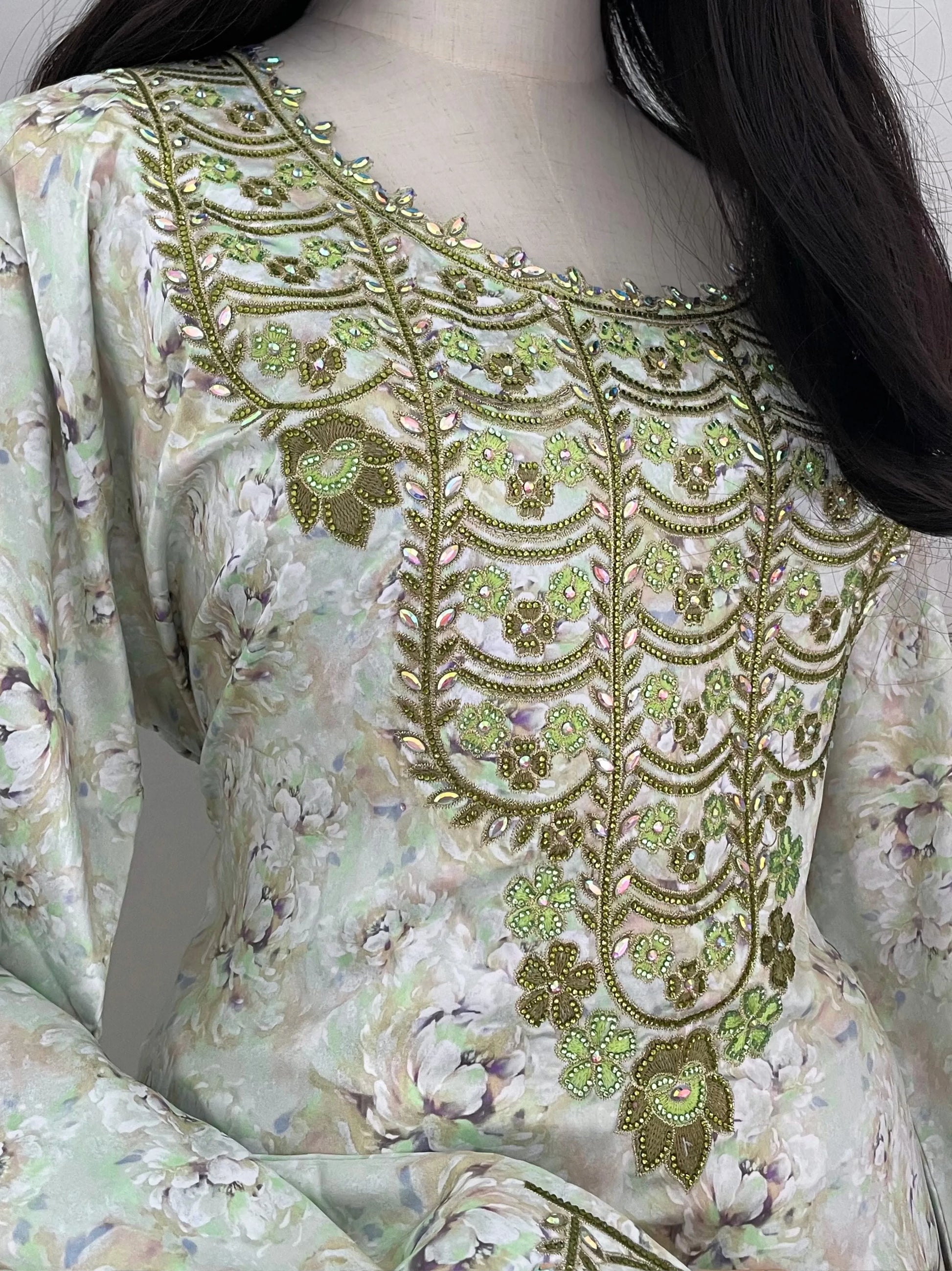 Taliya respire la fraîcheur d’un commencement. Son nom, qui évoque la lumière de l’aube, lui va à merveille : elle incarne la promesse d’un jour nouveau, doux et paisible. Une robe pour celle qui avance avec calme, mais toujours vers la lumière.