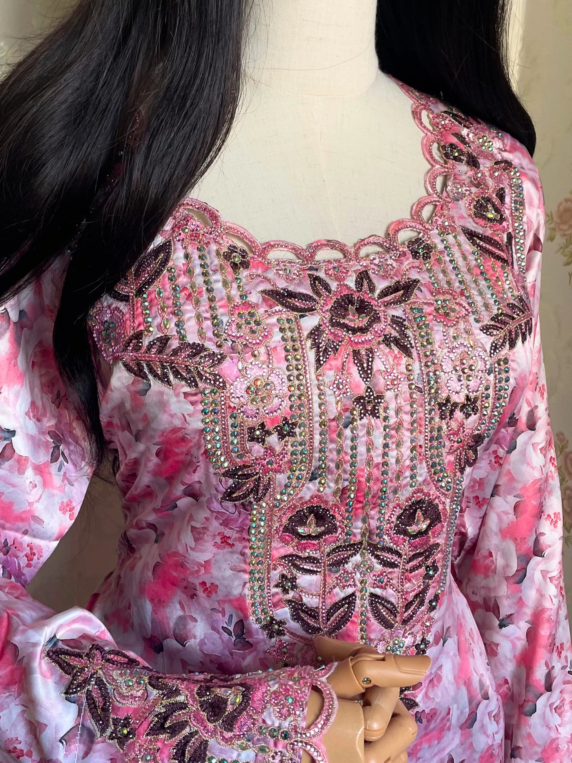 Laissez sécher à plat, à l'ombre, pour conserver l'éclat des fibres et la finesse des broderies.